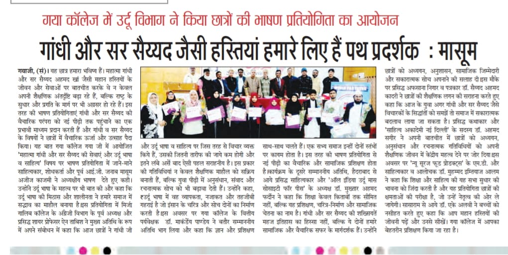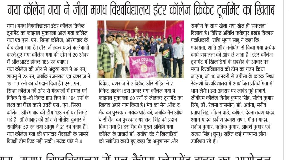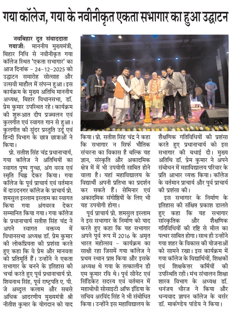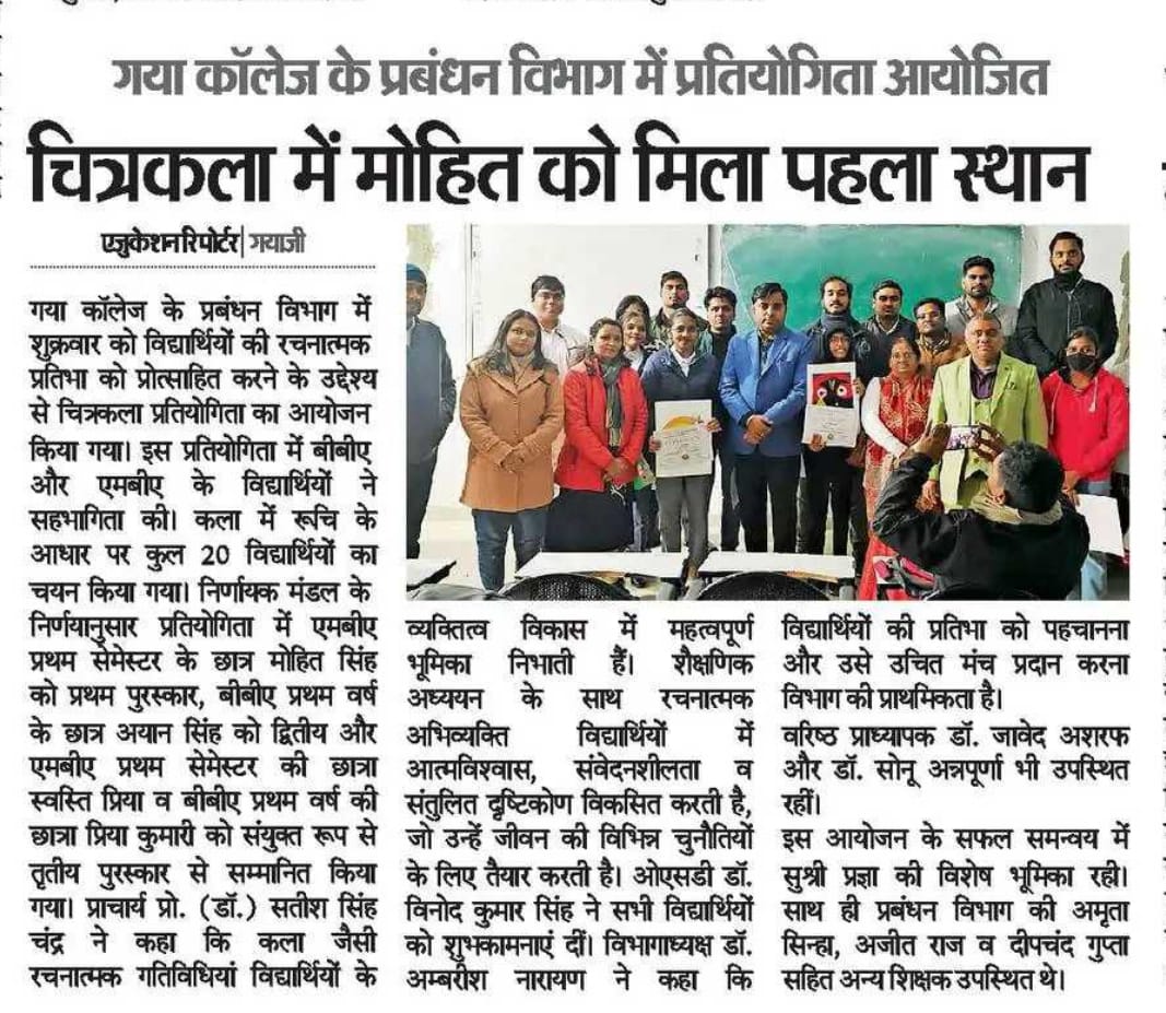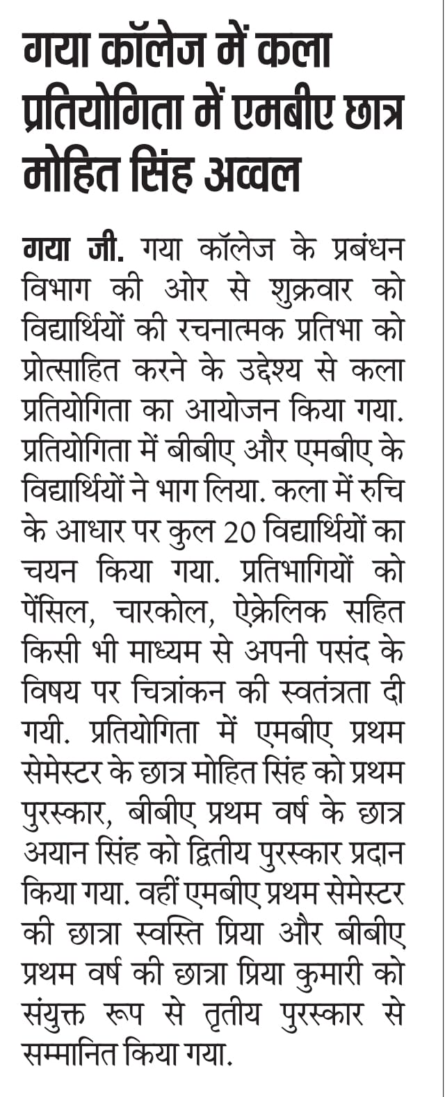 The academic experience at Gaya College is quite positive. The teachers are helpful and explain concepts clearly. I feel that the course curriculum is well-structured, but there is a need for more interactive and modern teaching methods, especially in terms of digital learning.
